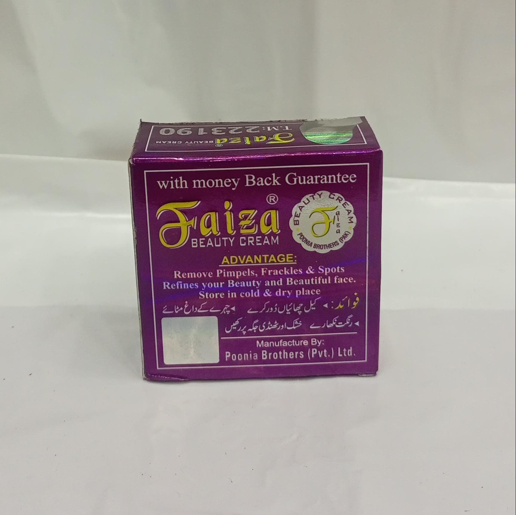 No.1 Beauty Cream which is essential to remove pimples freckles and blackness of the face. Faiza Beauty Cream is used for spotless, beautiful and white color face as well.