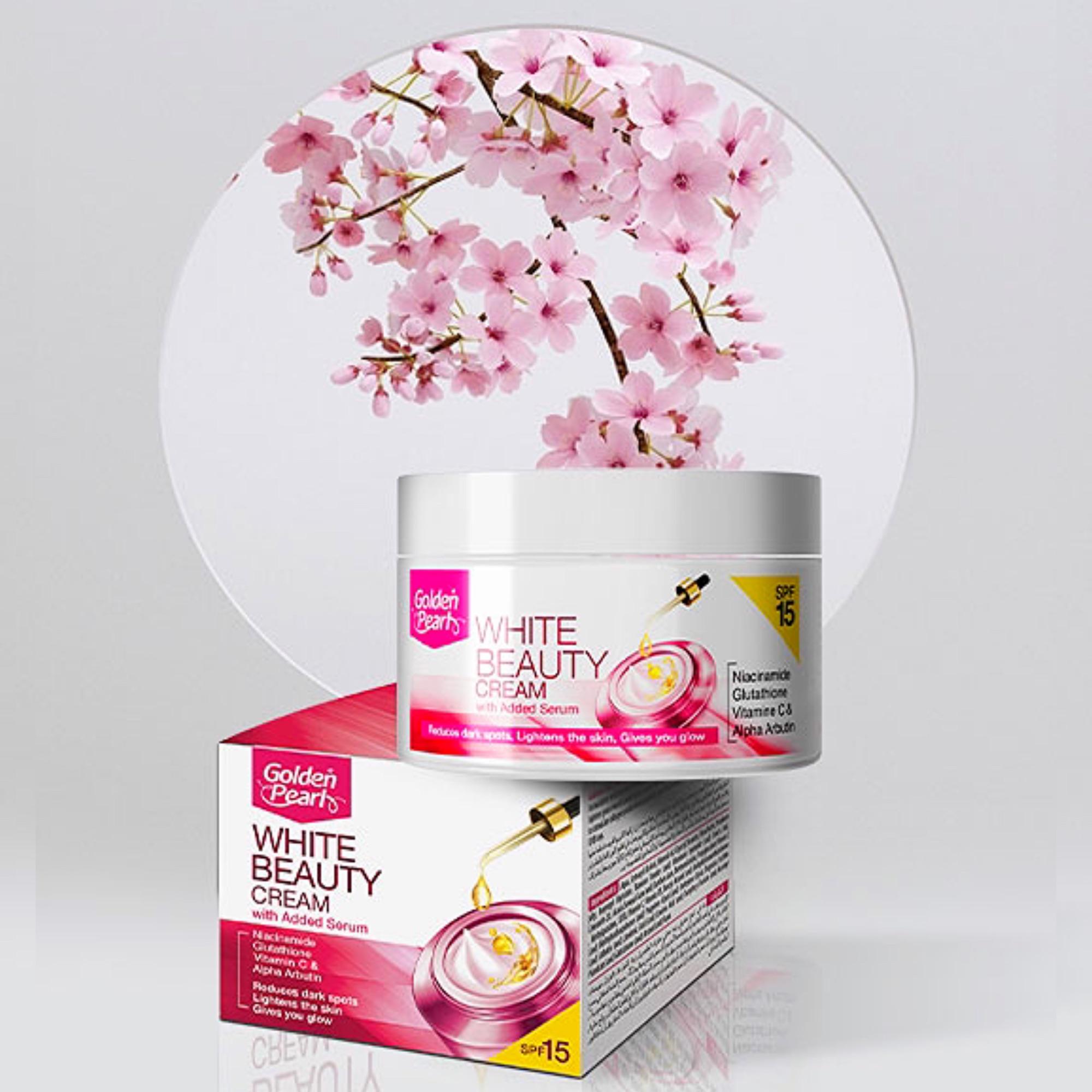 Golden Pearl White Beauty Cream with a unique formulation of Niacinamide, Glutathione, Vitamin C and Alpha Arbutin lightens your overall complexion, reduces dark spots by minimizing the melanin production, helps to stimulate collagen production and makes your skin healthy. It also protects your skin from UVA and UVB rays.
