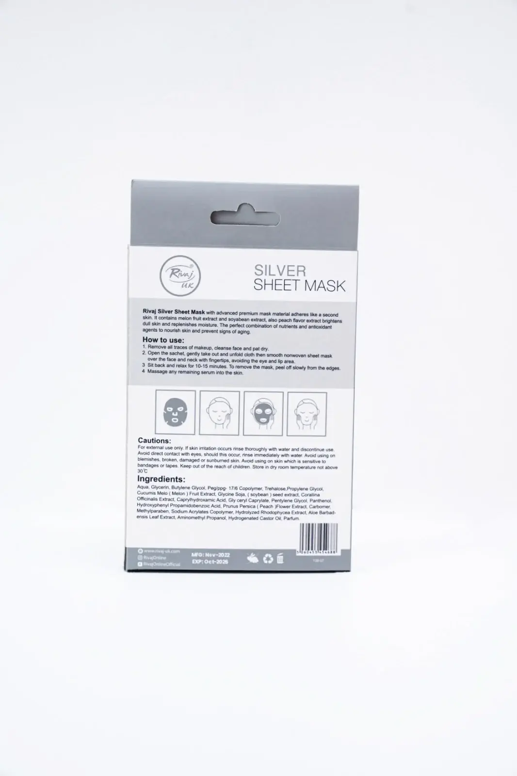 Rivaj Silver Sheet Mask Rejuvenate & offers refreshed appearance. Defends skin against free radicals. A silver sheet mask can be used to reduce general skin dryness, remove dead cells and also give you a complexion that will get you noticed for all the right reasons. Not only that but wearing one helps to add volume, improve elasticity and plump up not just the outer but also the inner skin.